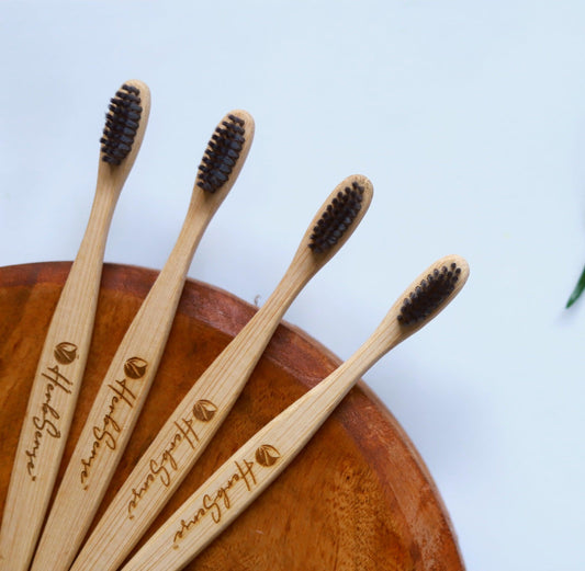 Bamboo ToothBrush with Charcoal Infused Soft Bristles | Eco-friendly & Sustainable | (Pack of 4)