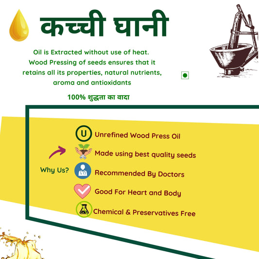 Wood Pressed Mustard Oil-Unrefined & Unfiltered Cooking Oil,Hair Oil,Baby Massage Oil ,Zero Added Preservatives.2L ( 1L Pack of 2 )