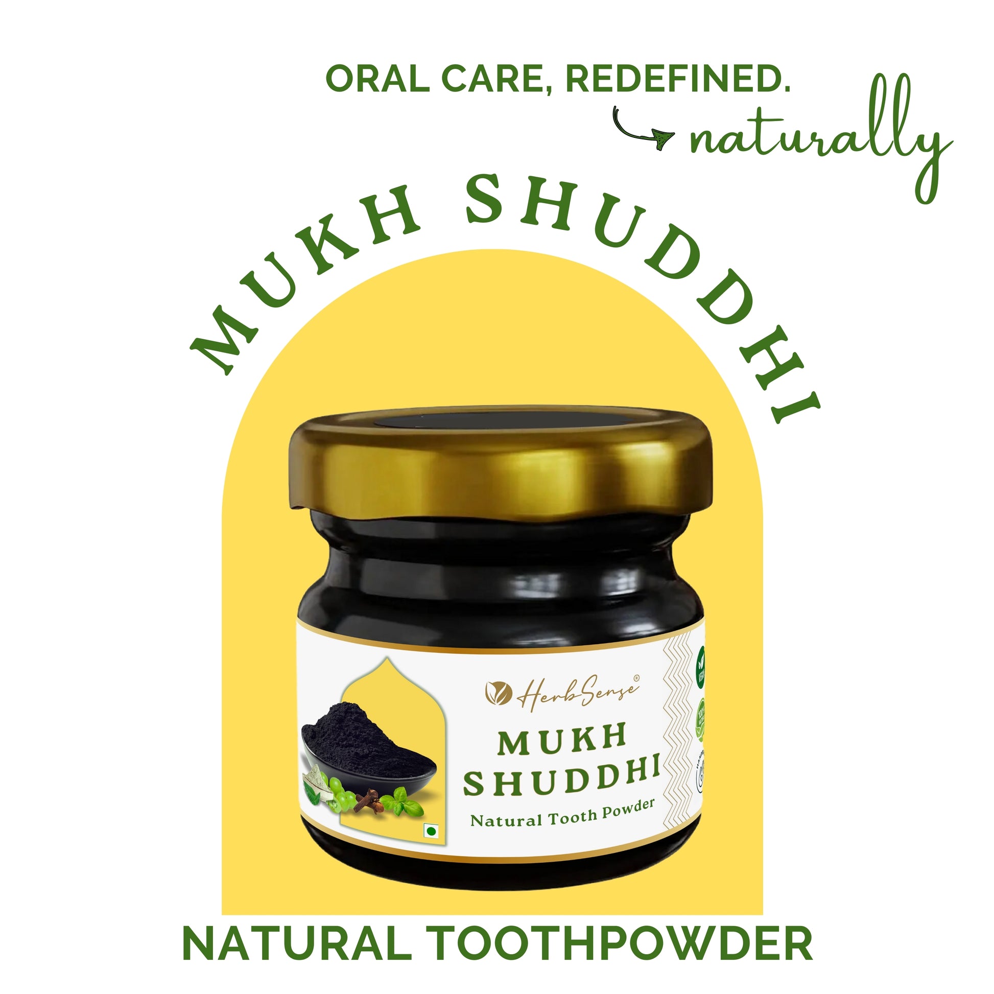 Herbsense Mukh Shuddhi Herbal Tooth Powder is a Combination of Time Honoured Medicinal Herbs with anti-bacterial and anti-fungal properties.