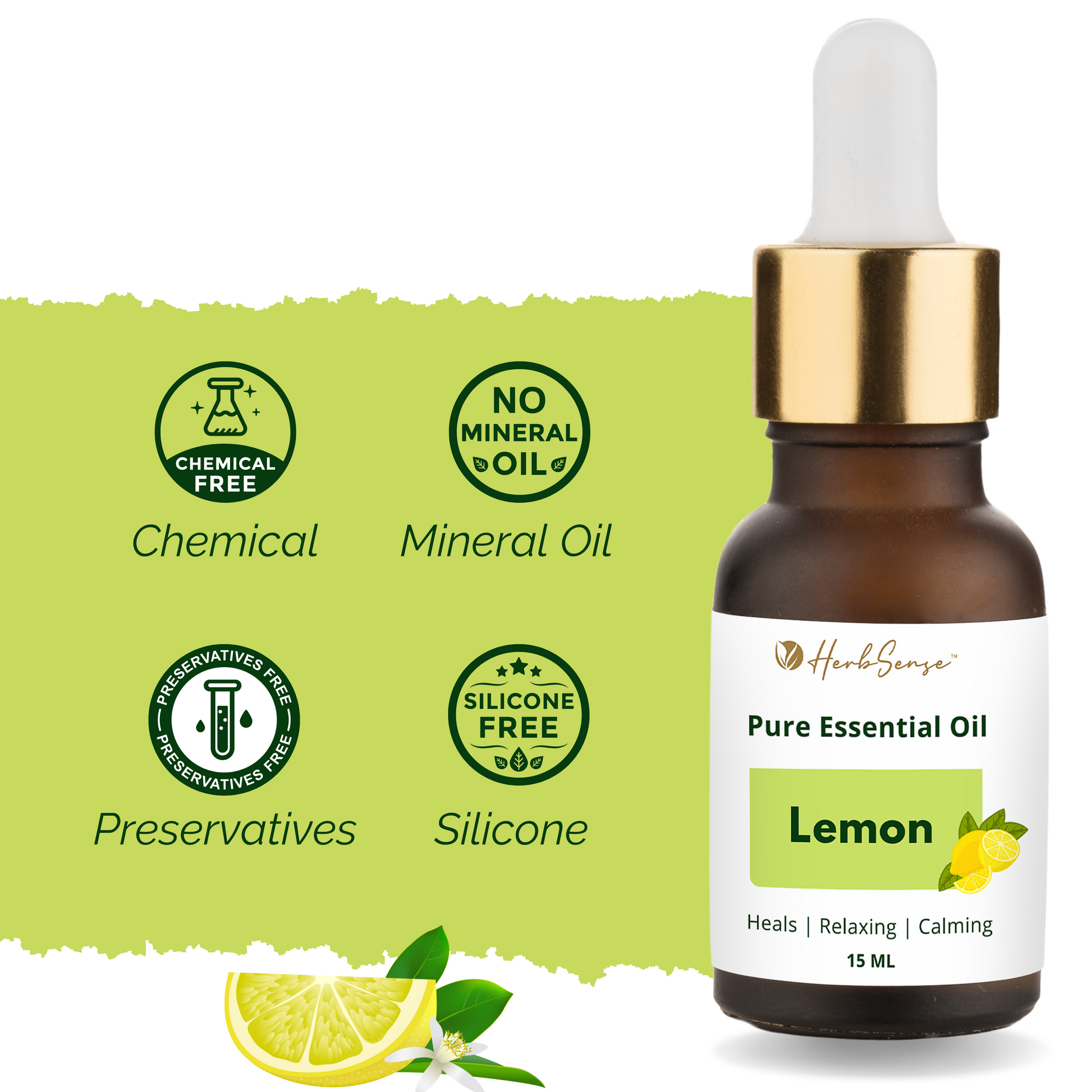 Lemon Essential Oil for Skin, Hair, Scalp, Face, Nails, Aromatherapy - 100% Pure, Natural,15 ML