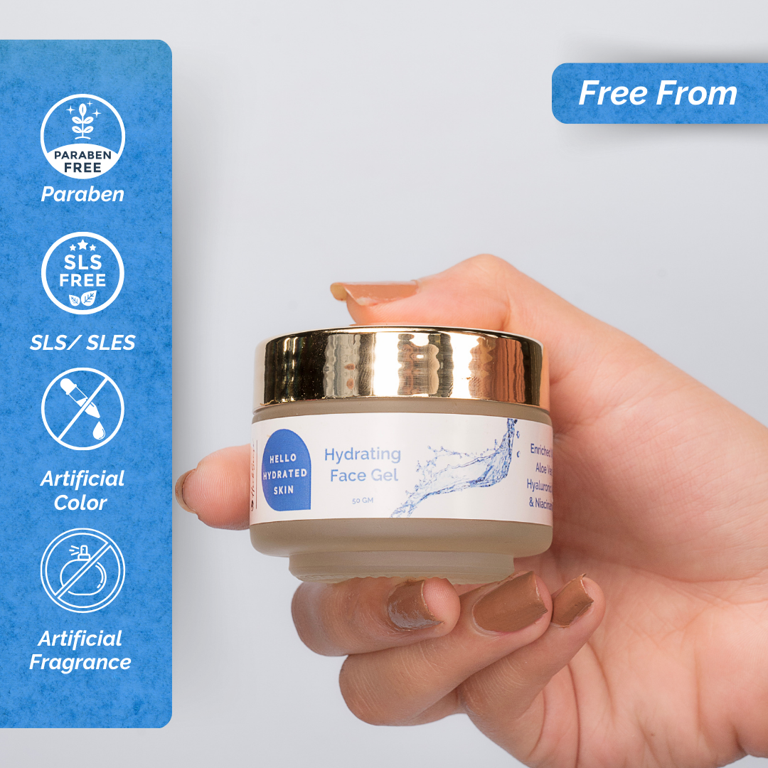 Our unique, non-greasy Hydrating Face Gel is a one-stop solution for your skin's hydration needs. Our rich yet lightweight formula penetrates deeply to boost your hydration. Aloe Vera, Licorice Extracts, Coconut Water & Niacinamide work together to heal and give your skin a glow while Hyaluronic Acid, Wheat Protein and Vitamin B5 help retain moisture and enhance natural repair.