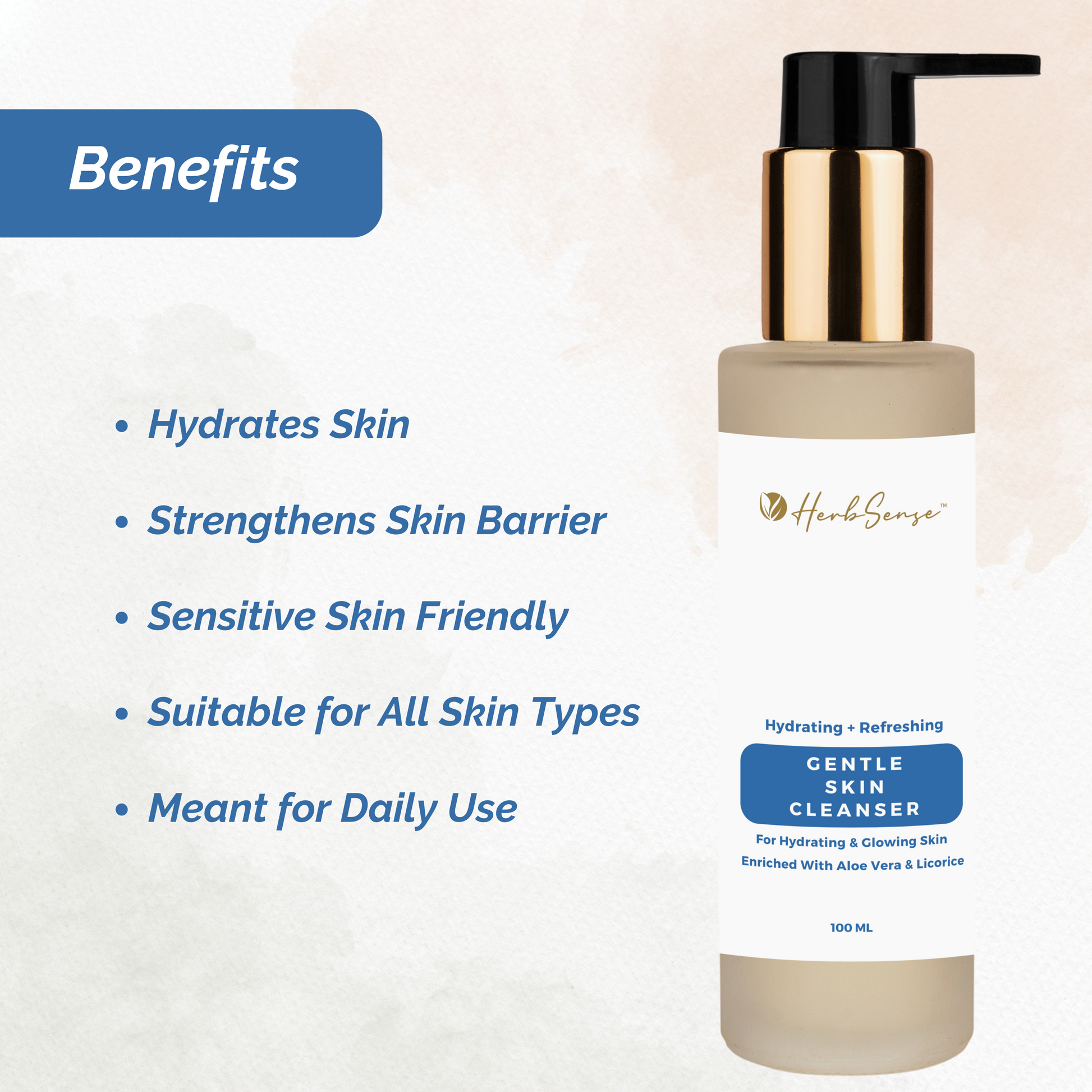 Herbsense Hydrating Gentle Skin Cleanser is a mild, soap-free cleanser that works gently on skin without stripping away natural oils and nutrients.