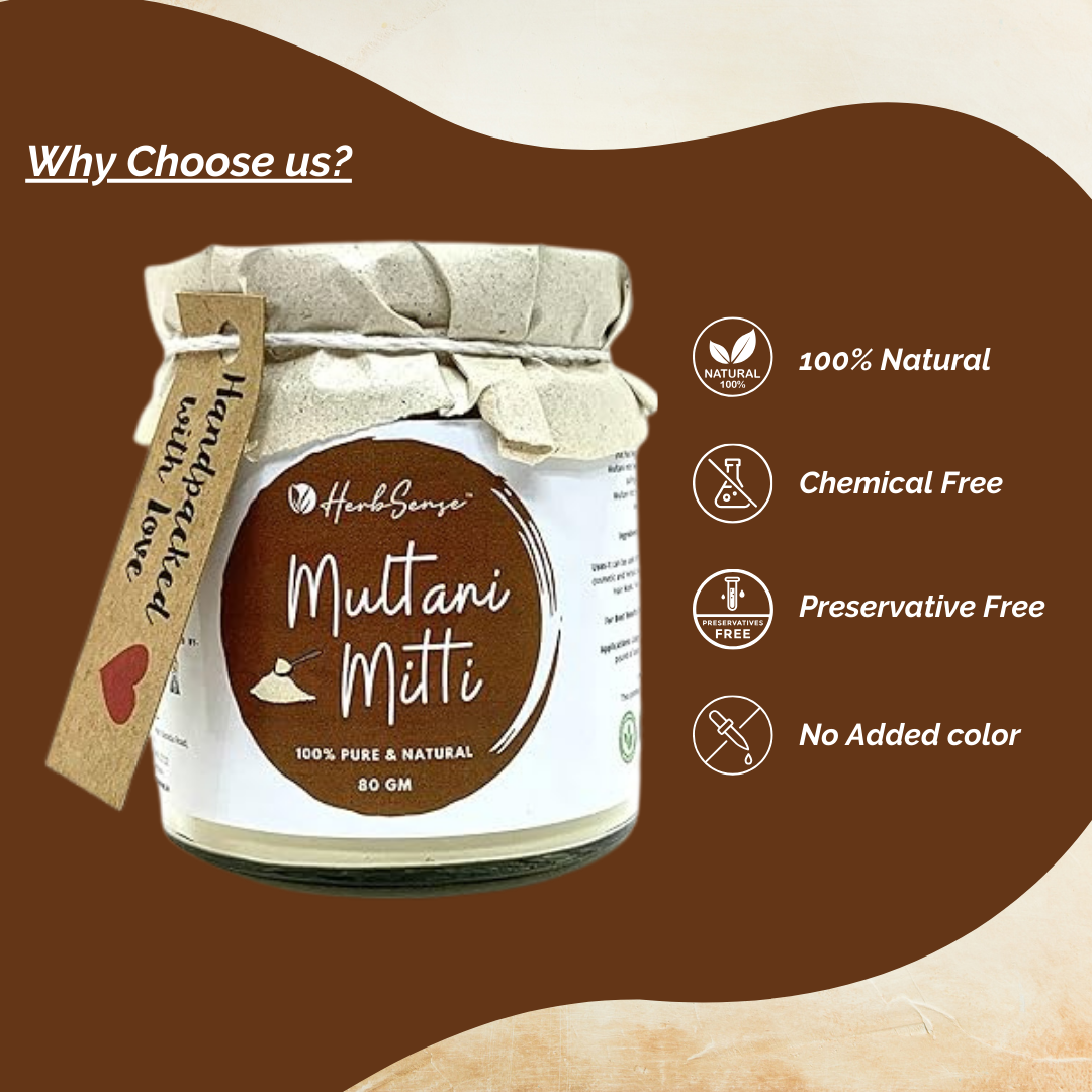 Natural Multani Mitti Powder- 80 GM | Oil Control, Skin Cleansing, Acne & Pimple Care | Glass Jar Packaging