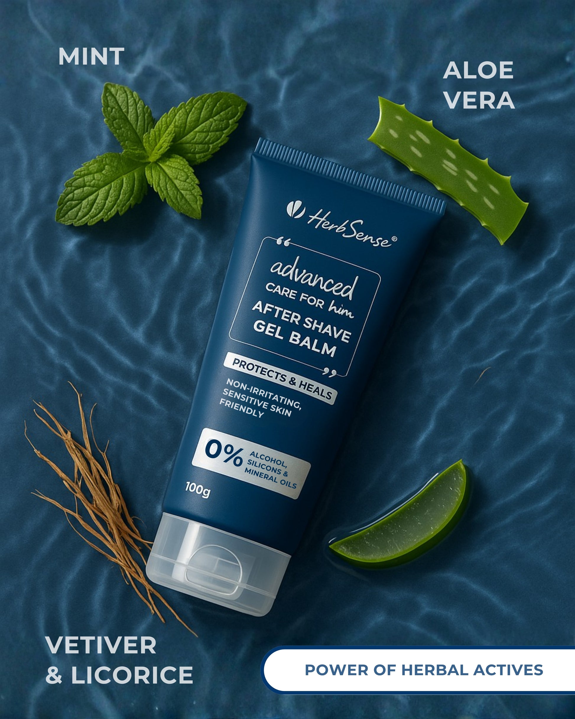 HerbSense After Shave Gel Balm, After Shaving Lotion, Non-Irritating, Sensitive Skin Friendly, Alcohol-Free, 100g