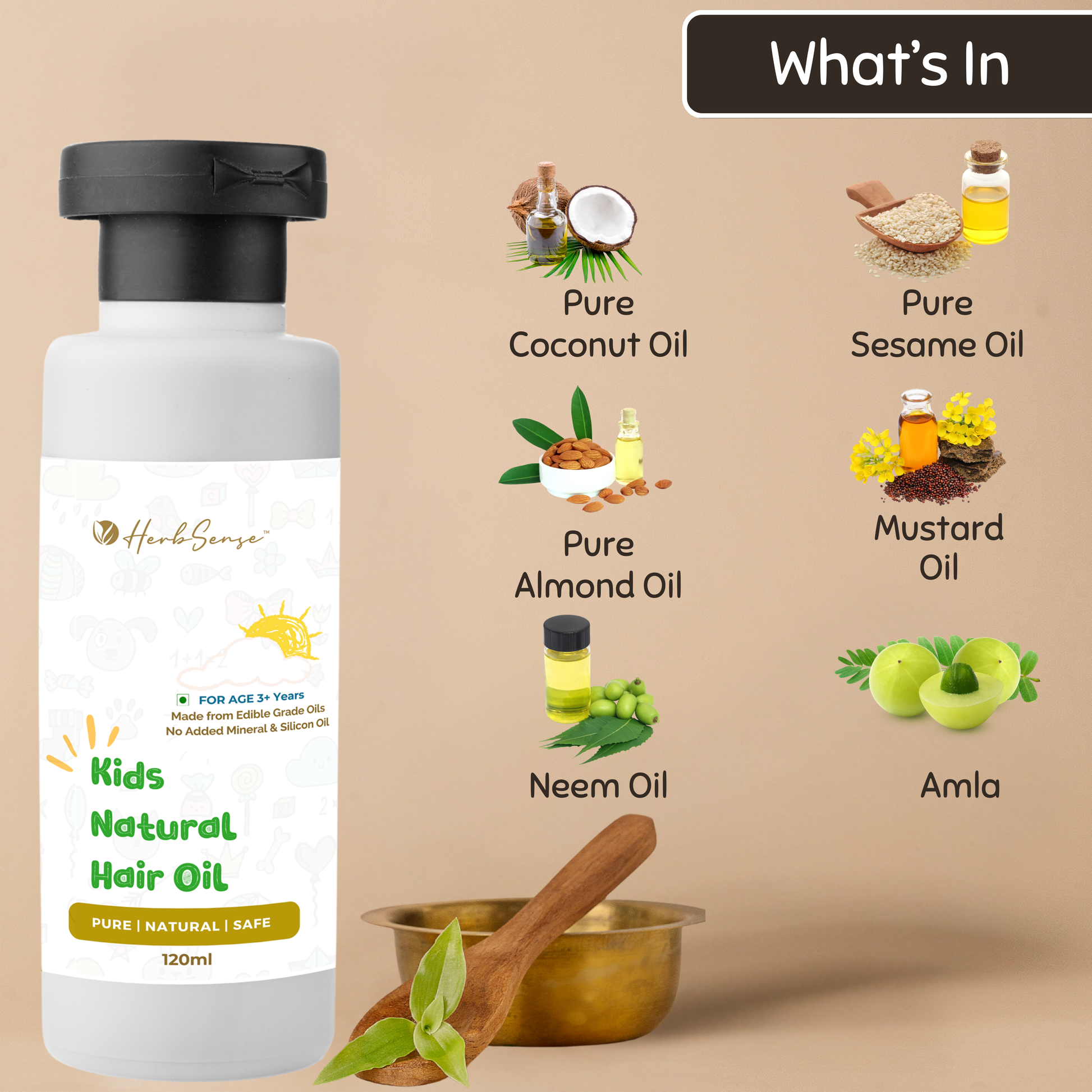 Kids Hair Oil - Pure Blend of Wood Pressed Oils & Herbs | For Age 3+ Years | 120ml