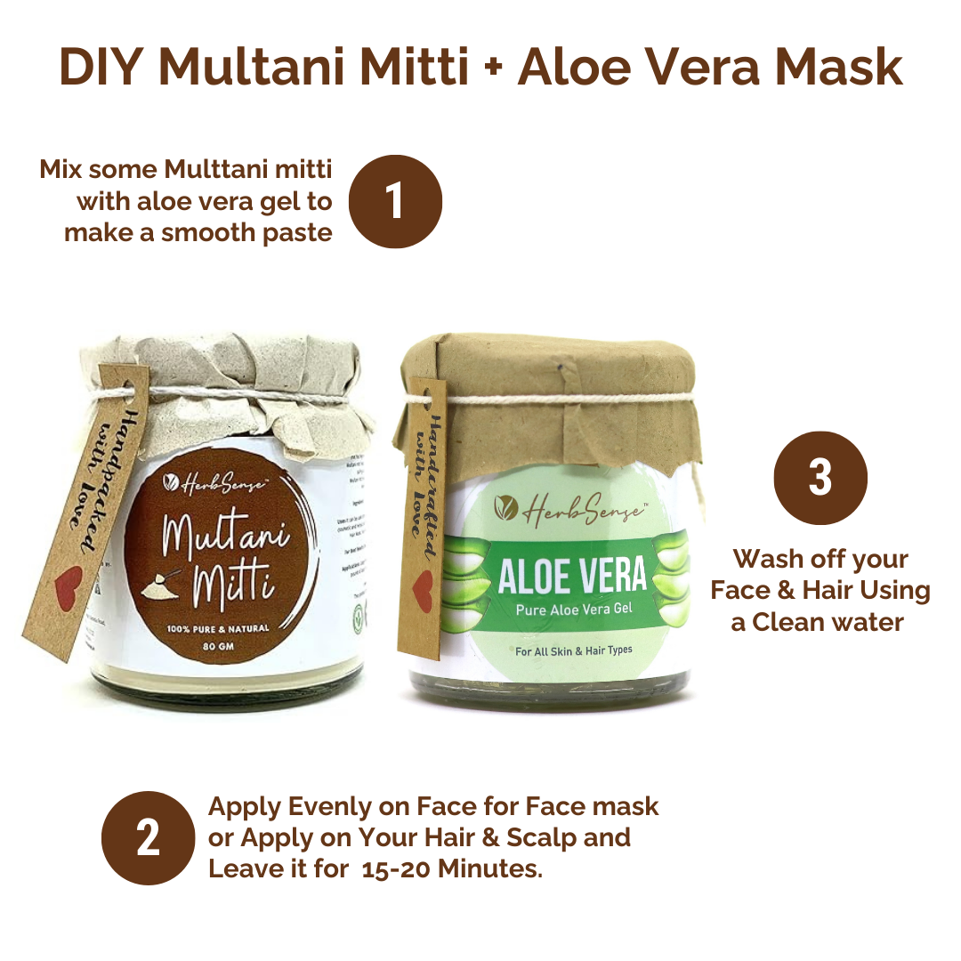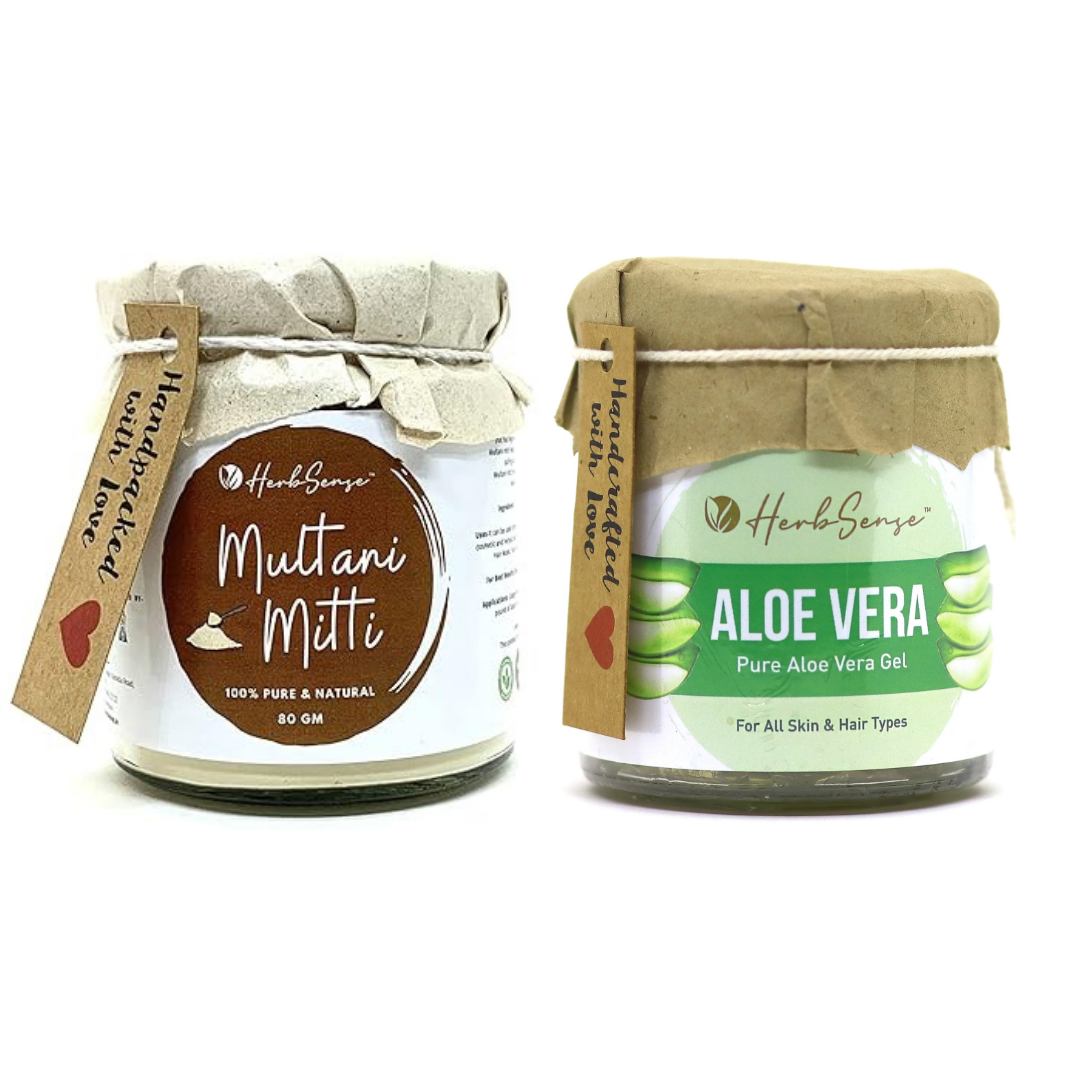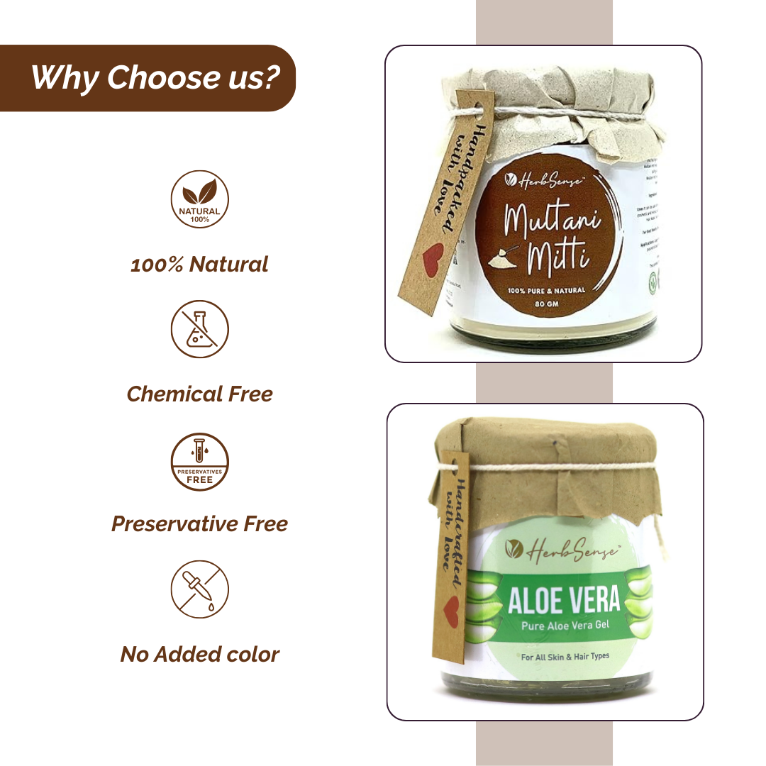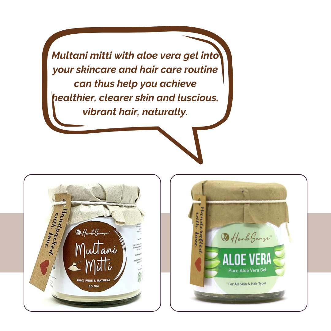 • COMBO PACK- Herbsense Combo Pack- Pure Aloe Vera Gel 180gm & Multani Mitti 80gm